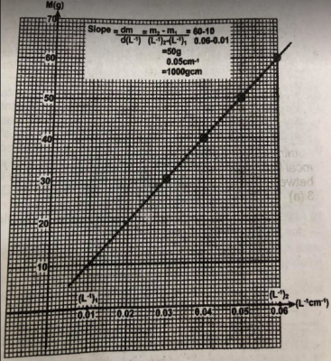 - Plot a graph of M on the vertical axis against L\(^{-1}\) on the horizontal axis.