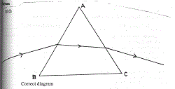- Draw a ray diagram to show the path of the ray through the prism.