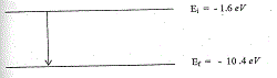 (d) An electron jumps from an energy level of -1.6eV to one of -1.4 eV in an atom. Calculate the energy and wavelength of the emitted radiation. [ h = 6.6 x 10\(^{-34}\) Js; c = 3.00 x 10\(^8\) ms\(^{-1}\); eV = 1.6 x 10\(^{-19}\) J ]