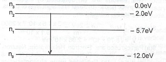 The diagram above illustrates th3 energy levels of an electron in an atom. If an excited electron moves from n\(_2\) to n\(_\theta\), calculate the: