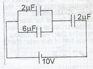 Using the circuit diagram above. Calculate the potential difference across the capacitors in parallel