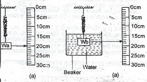 In fig. la and fig.1 b above, Ida and Wb represent the respective loads on a spring placedtiear a 30 cm rule, when in air and when in water: