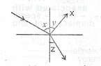 (i) Copy the diagram a label the angles of: (\(\alpha\)) Incidence (x); (\(\beta\)) Reflection (y); (\(\gamma\)) refraction (z); with t glass letters indicated.
