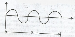 The diagram above illustrates an electromagnetic wave travelling with speed 3.0 x 108ms-1. Calculate the wave length of the wave