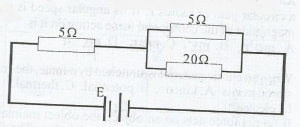 In the circuit diagram above, E is a battery of negligible internal resistance. If its emf is 9.0V. Calculate the current in the circuit “