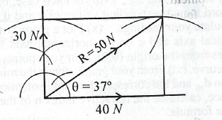 (b) Two forces 30 N and 40 N act at right angles to each other. Determine by scale drawing, the magnitude and direction of the resultant force,.using a scale of 1 cm to 5 N.
