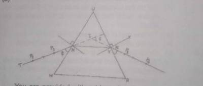 - Place the triangular glass prism on a drawing paper and draw its outline UMR. Remove the prism.