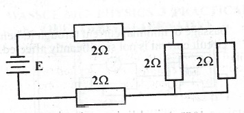 A battery of negligible internal resistance is connected to a set of resistors as illustrated in the circuit diagram above. Determine the equivalent resistance of the circuit.
