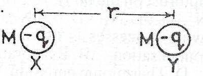 The diagram above illustrates two charged bodies, X and Y separated by a distance r. Each body has charge q and mass m. Which of the following statements about the electrostatic force \(F_{e}\) and gravitational force \(F_{g}\) acting between the bodies is correct?
