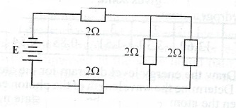 A battery of negligible internal resistance is connected to a set of resistors as illustrated in the circuit diagram above. Determine the equivalent resistance of the circuit.