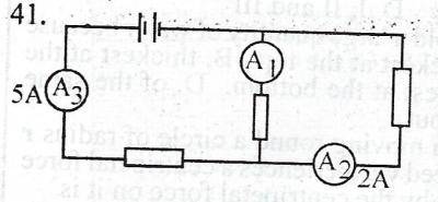 The circuit contains three ammeters A1, A2 and A3 with readings of A2 and A3 shown as indicated in the diagram. Determine the reading of A1.