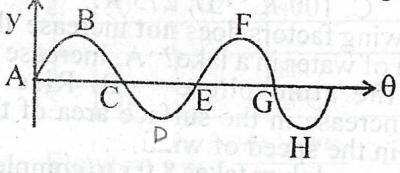 The diagram above represents a transverse travelling wave. Which two points are 180° out of phase?