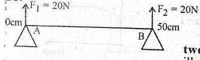 A bar AB is balanced horizontally on two knife edges as illustrated as in the diagram above. Determine the weight of the bar.