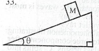 In the diagram illustrated a block of mass M is at rest on a plane inclined at an angle \(\theta\) to the horizontal. As \(\theta\) increases, the velocity ratio of the plane