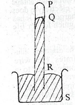 The diagram above illustrates a simple barometer. Which distance measures the atmospheric pressure?