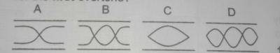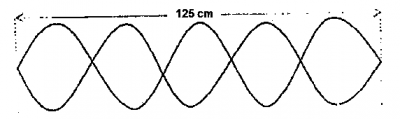 The diagram above illustrates a mode of vibration of a wire of length 125 cm. The speed of the waves along the wire is 120 ms-1. Use the diagram to answer questions 2 and 3.