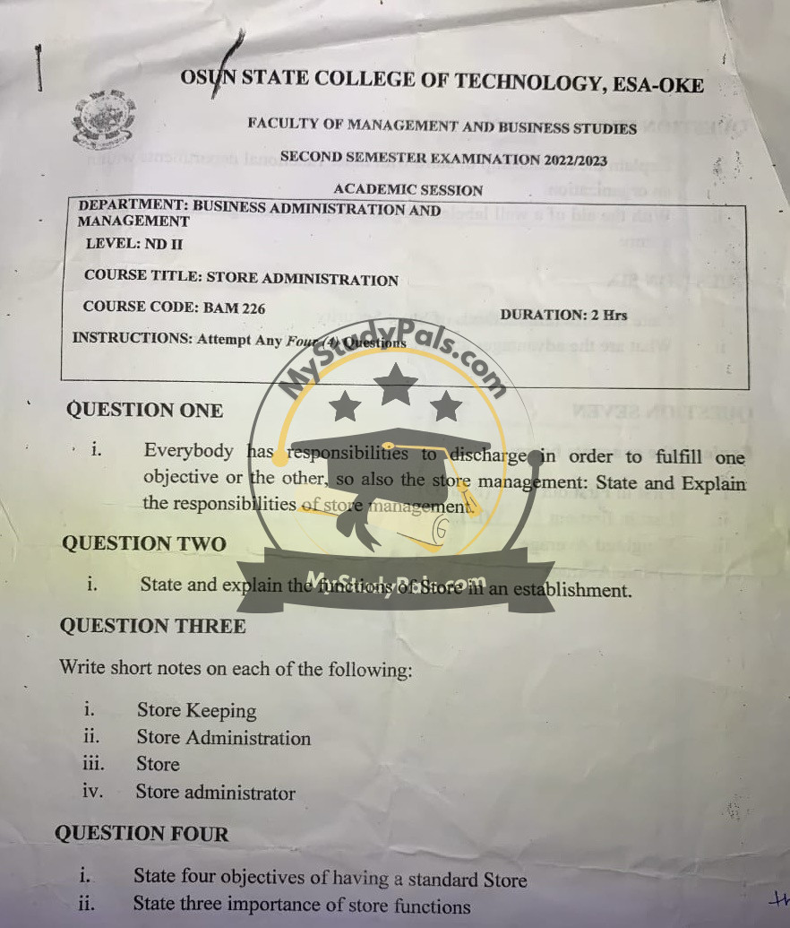 Store management has several responsibilities to ensure the efficient handling of materials and supplies. These responsibilities include: