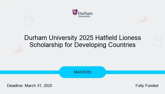 Stage 2: Submit an application for the Hatfield College Lioness Scholarship and submit all supporting documents (Durham University offer letter, academic transcript, references and IELTS certificate) via email by the College deadline on 31 March 2025. You can complete the application form here.