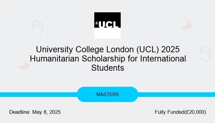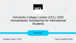 The UCL Humanitarian Scholarship supports students displaced by armed conflict or at serious risk due to such conflicts. It enables them to pursue a full-time Master’s degree at University College London (UCL). The scholarship provides full financial coverage, including tuition fees, a maintenance allowance, visa fees, and one return flight.