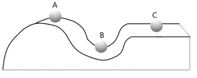 Name the type of equilibrium for each position of the ball