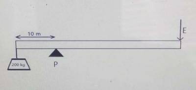 A 200 kg load is raised using a 110 m long lever as shown in the diagram above. The load is 10m from the pivot P. If the efficiency of the the lever is 80%, find the effort E required to lift the load.