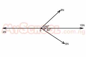 the diagram above shows forces 4N, 6N, 10N and 8N which act at a point O in the directions indicated. the net horizontal force is