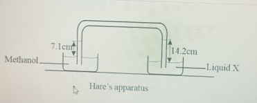 Using the diagram above, calculate the relative density of x, if the density of methanol is 800kgm\(^{-3}\)